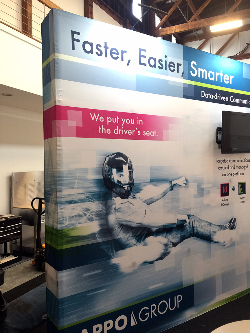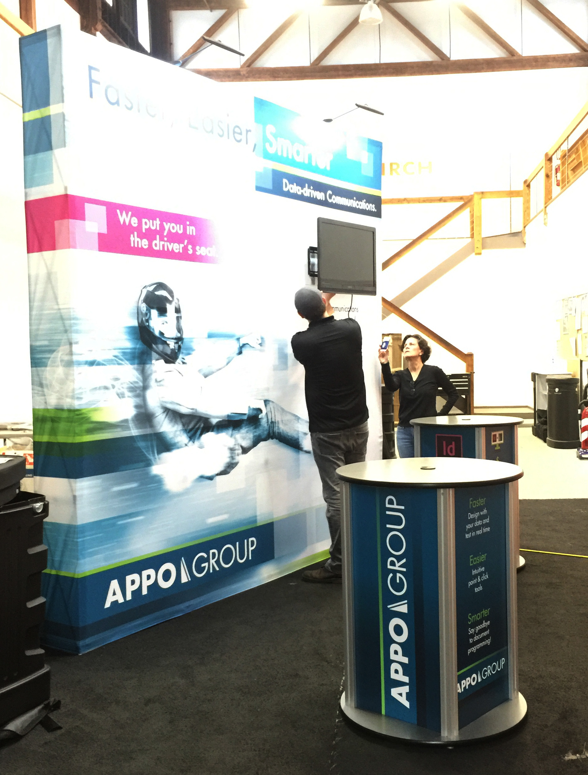 I worked directly with AppoGroup executives to brainstorm and create all graphics for new tradeshow booth and related marketing materials for this tech startup. I brought in the exhibit vendor to produce all materials including backdrop and tables to be printed and shipped to the conference.