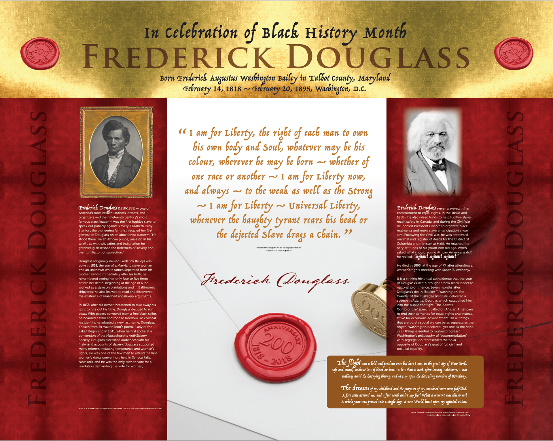 We developed Content and the Design for two large 8 x 8 foot display panels for the City of Baltimore's Black History month display inside City Hall for 2018 celebrating the 200th Anniversary of Frederick Douglass' birthday.