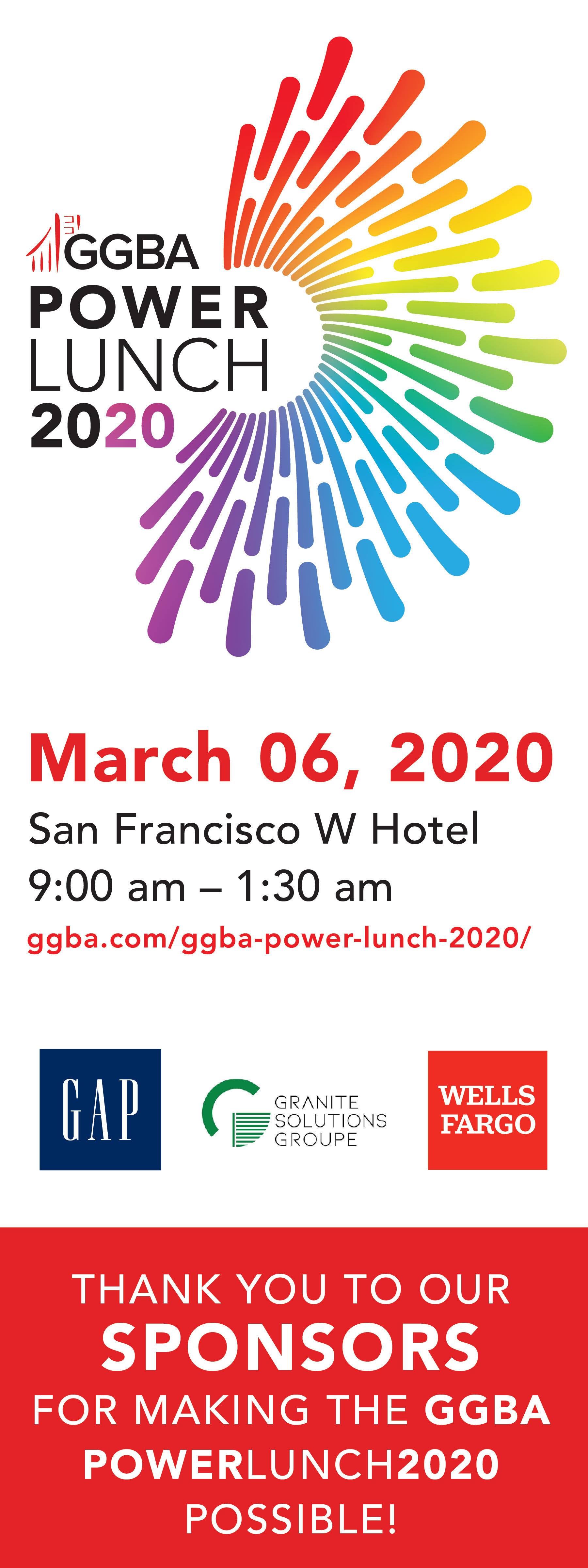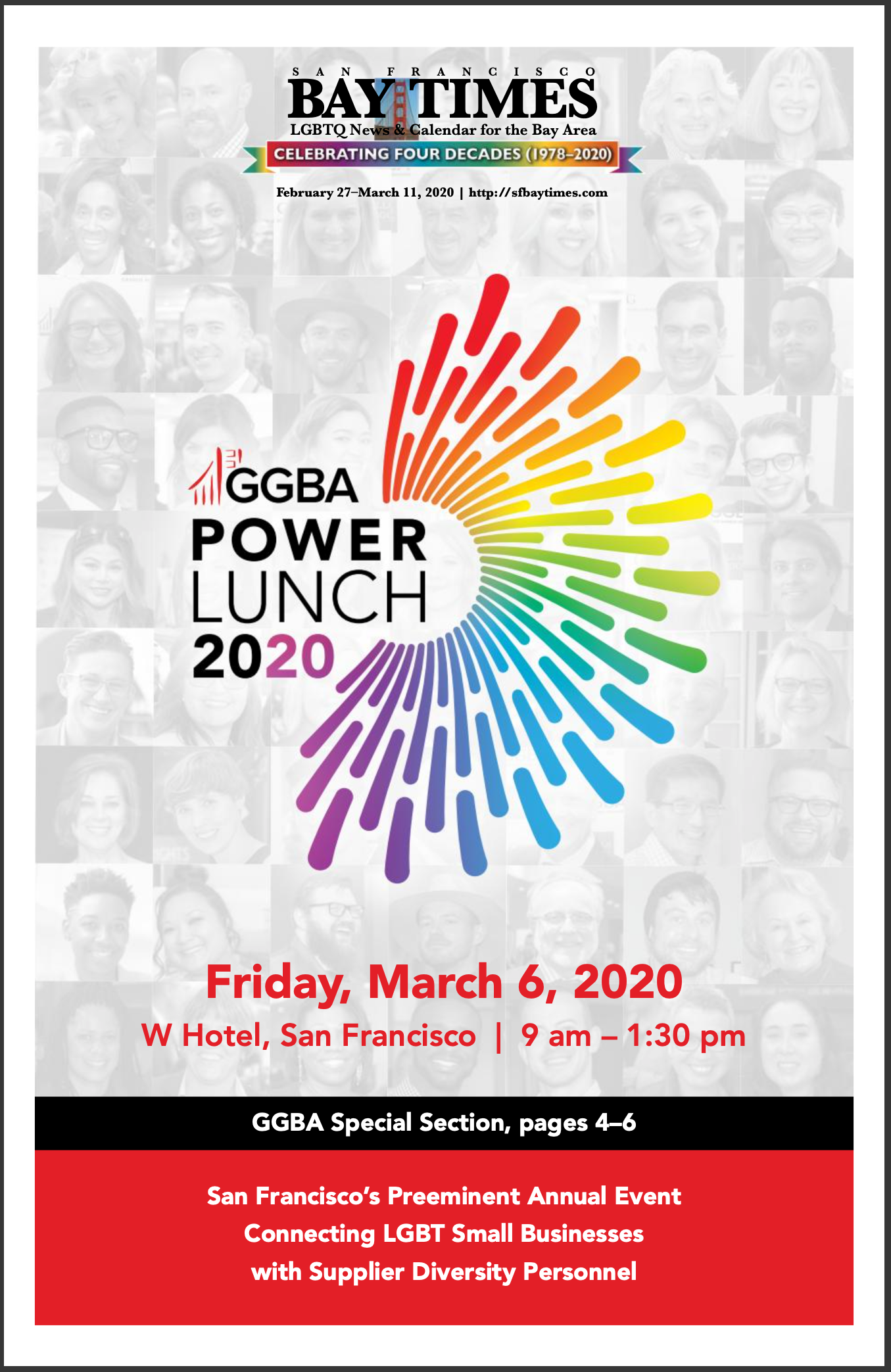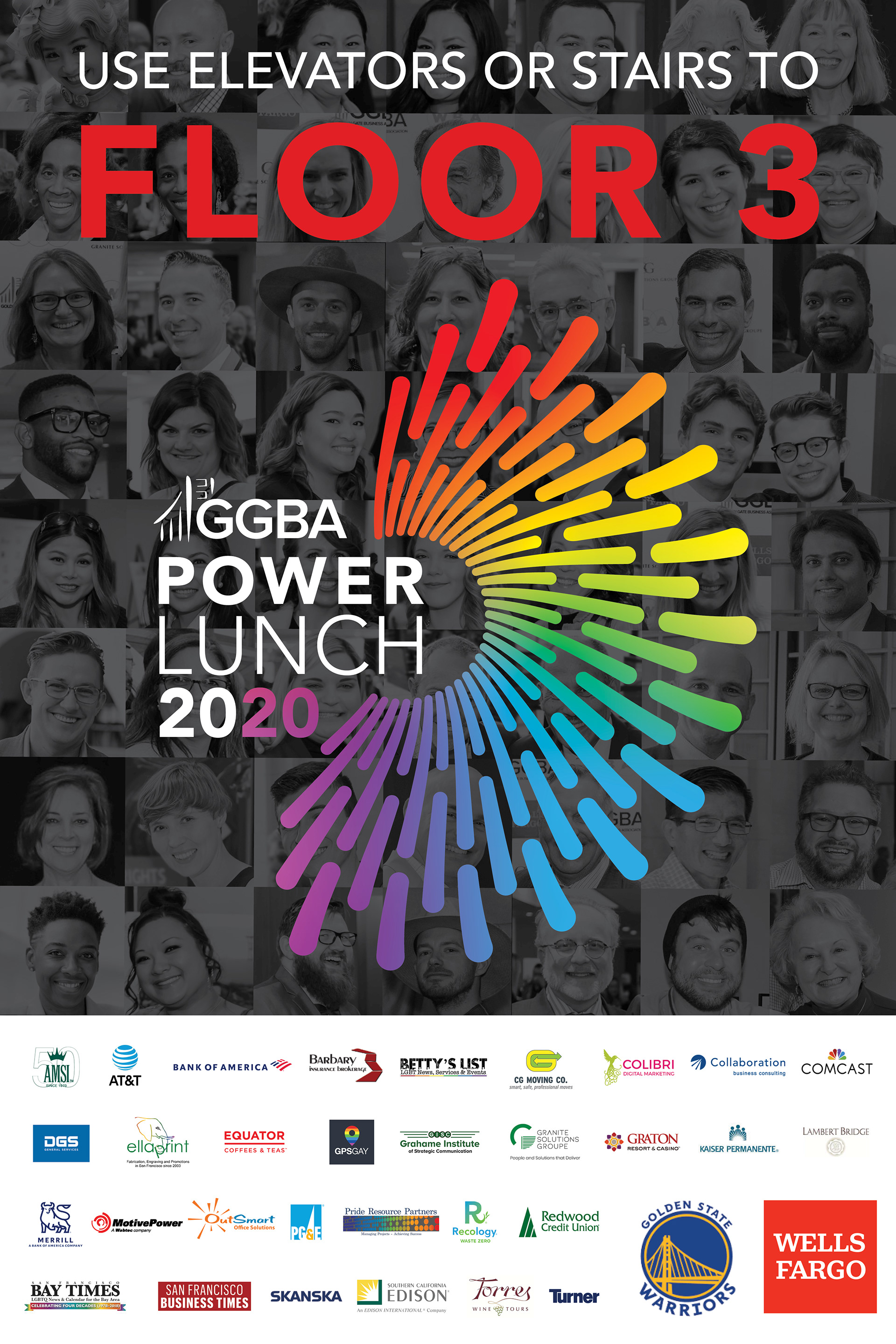 Logo design for Annual Golden Gate Business Association's signature event, the PowerLunch! Reflects LGBT identity and diversity in business. Created all ads, signage, social media graphics and powerpoint slides for the event.