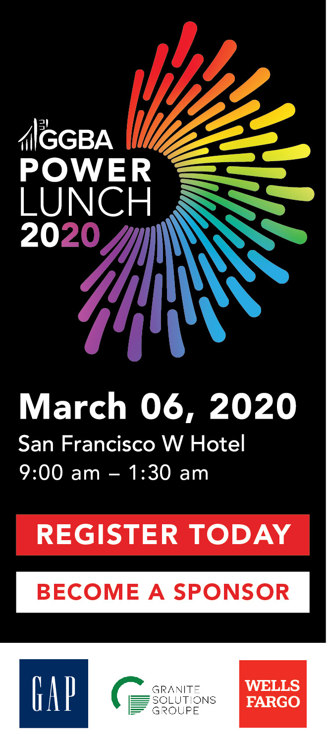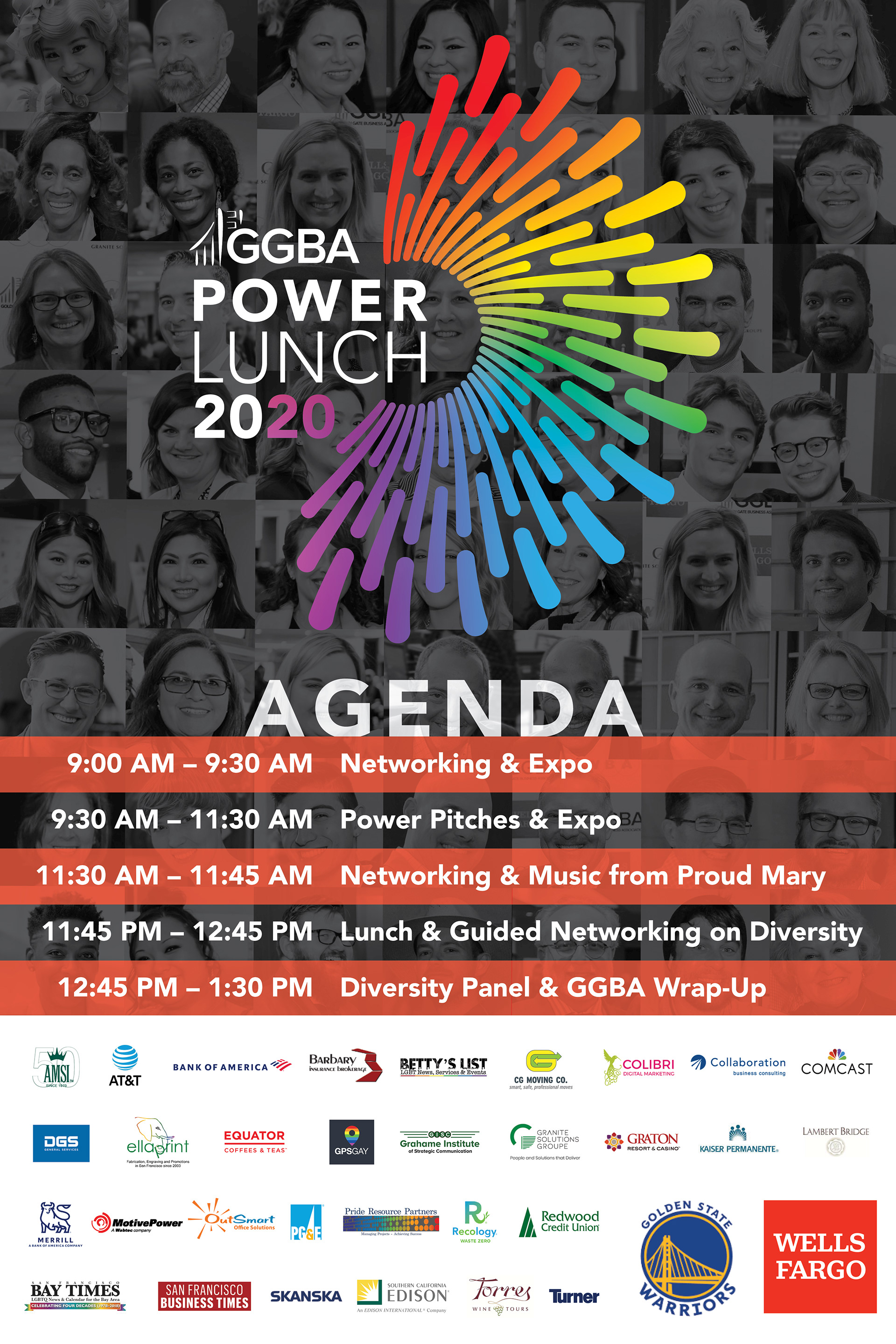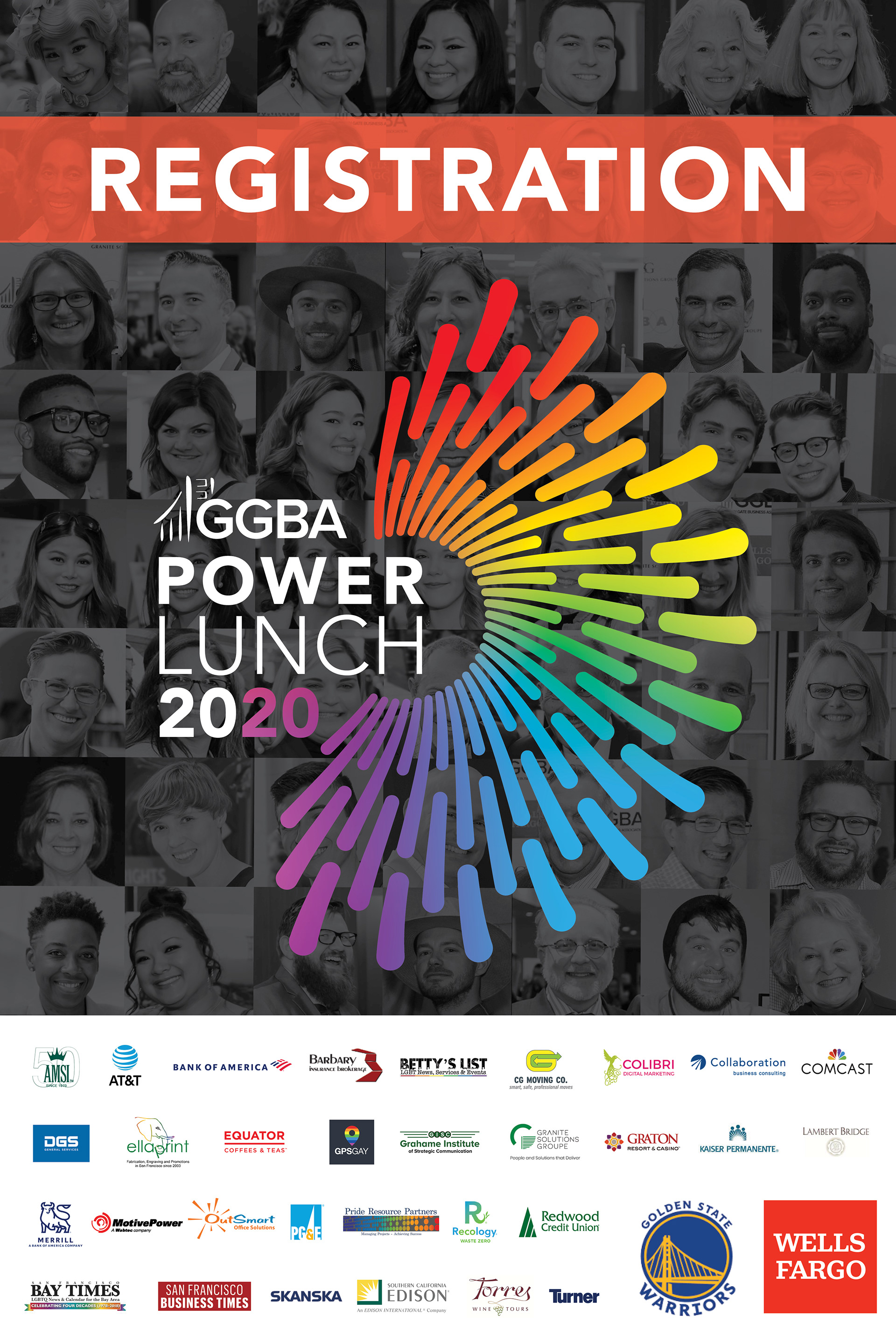 Logo design for Annual Golden Gate Business Association's signature event, the PowerLunch! Reflects LGBT identity and diversity in business. Created all ads, signage, social media graphics and powerpoint slides for the event.