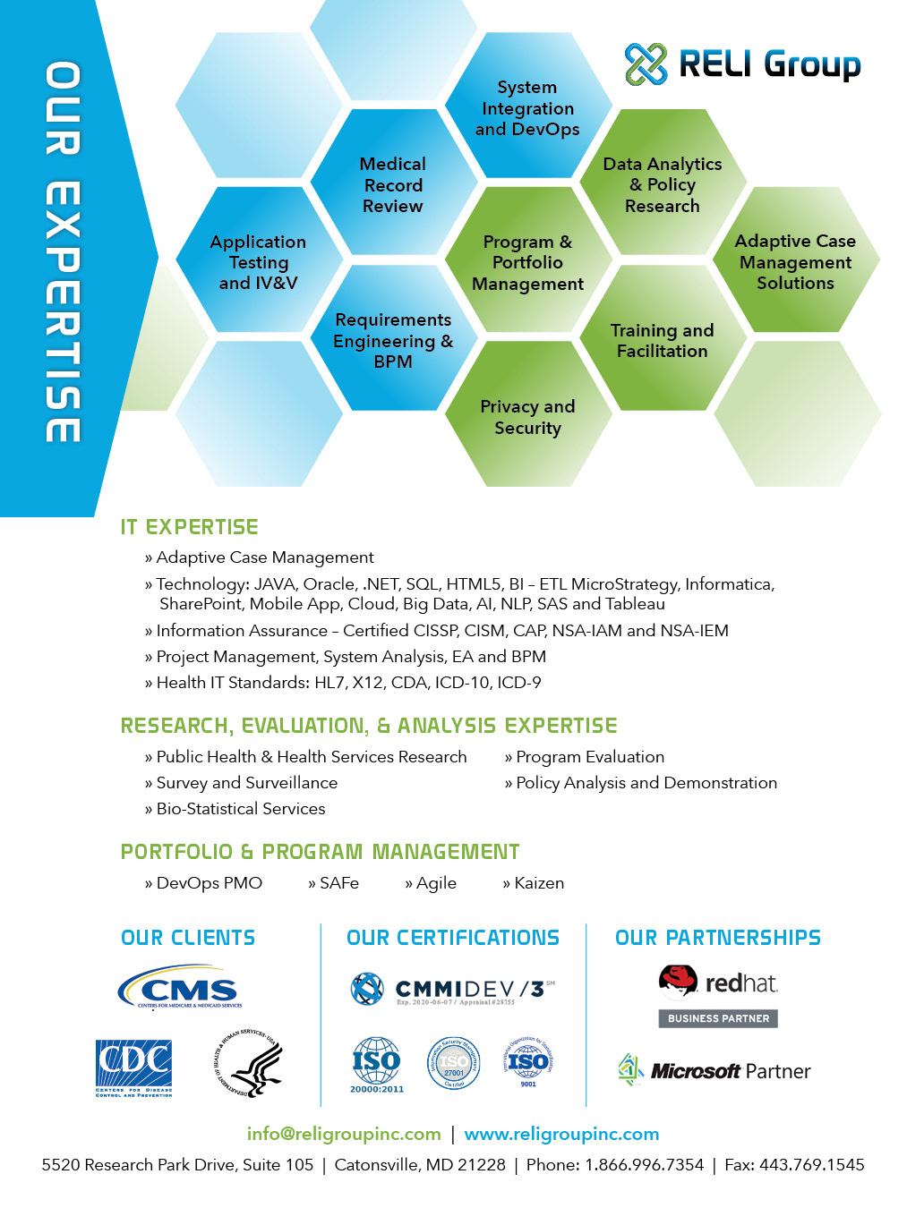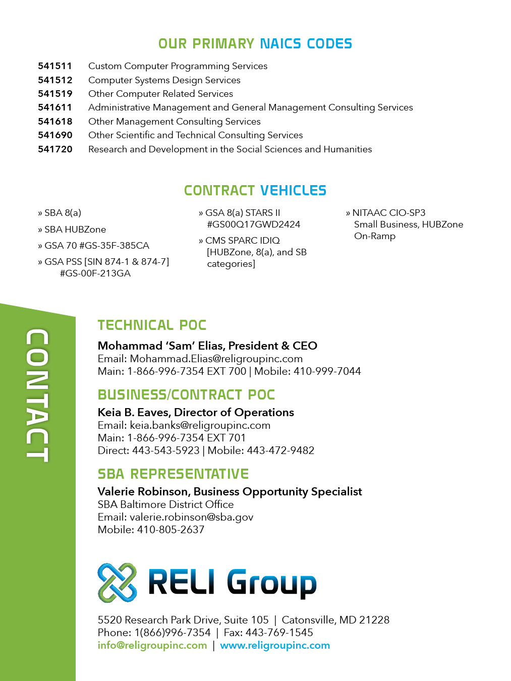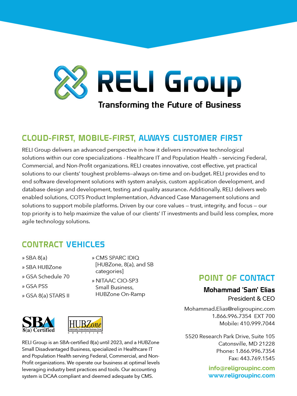 Logo and branding update along with new communications materials for prime government contracting firm, RELI Group.