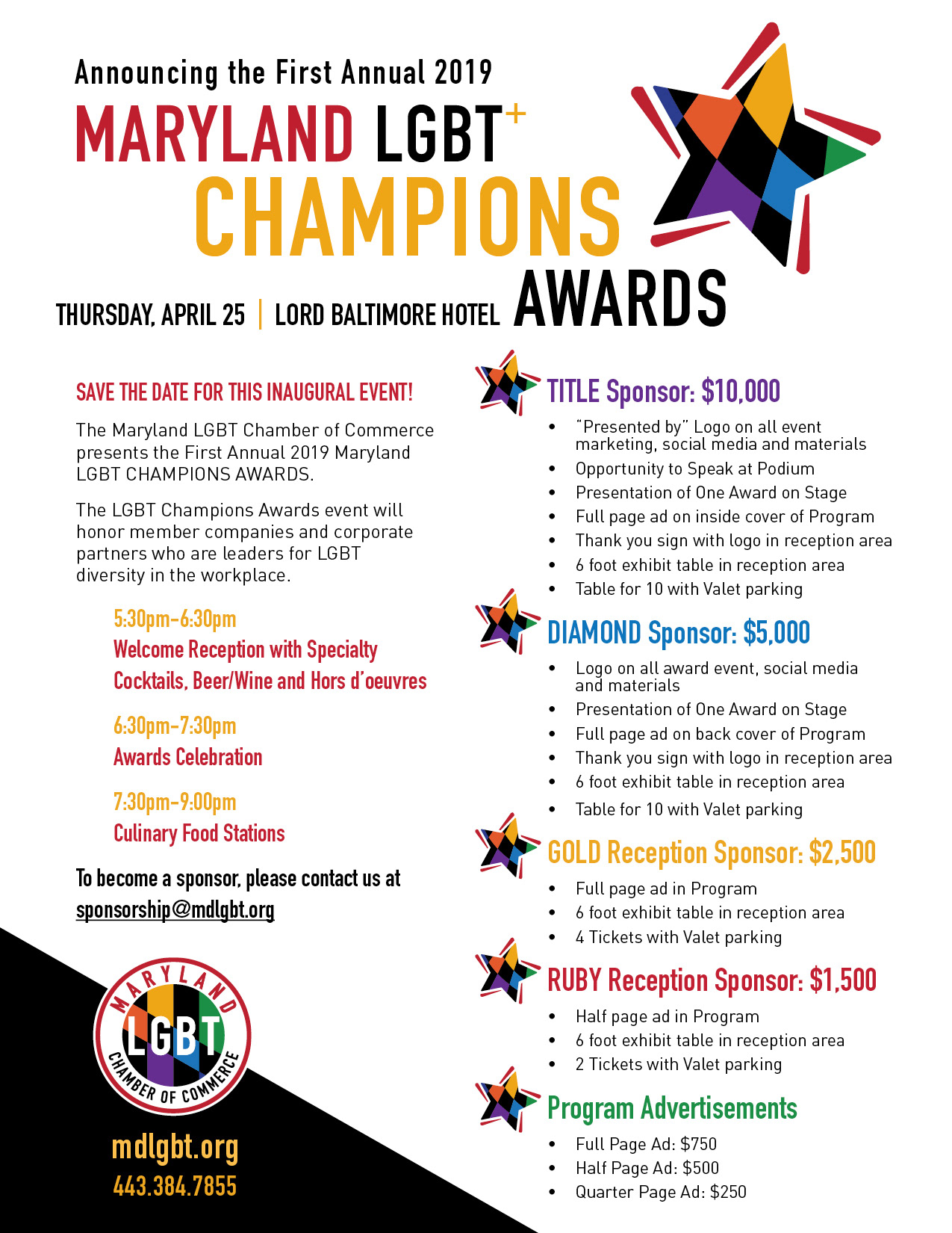 Design Maryland LGBT+ Champions Award star logo to be an extension of the MDLGBT Chamber of Commerce brand and design all event materials, e-blasts, social media graphics, step and repeat banner, signage and PowerPoint slides.