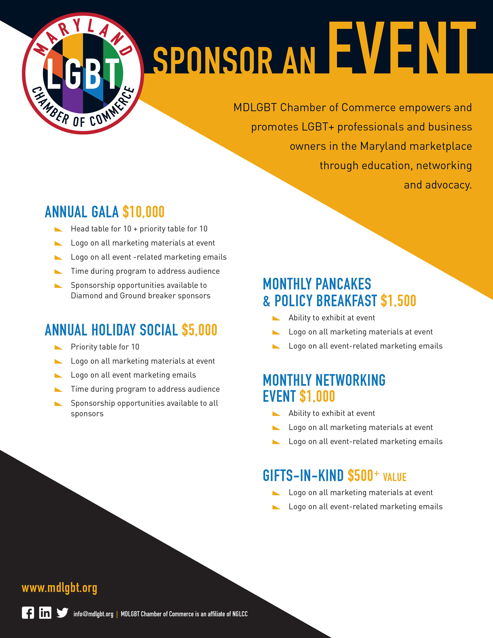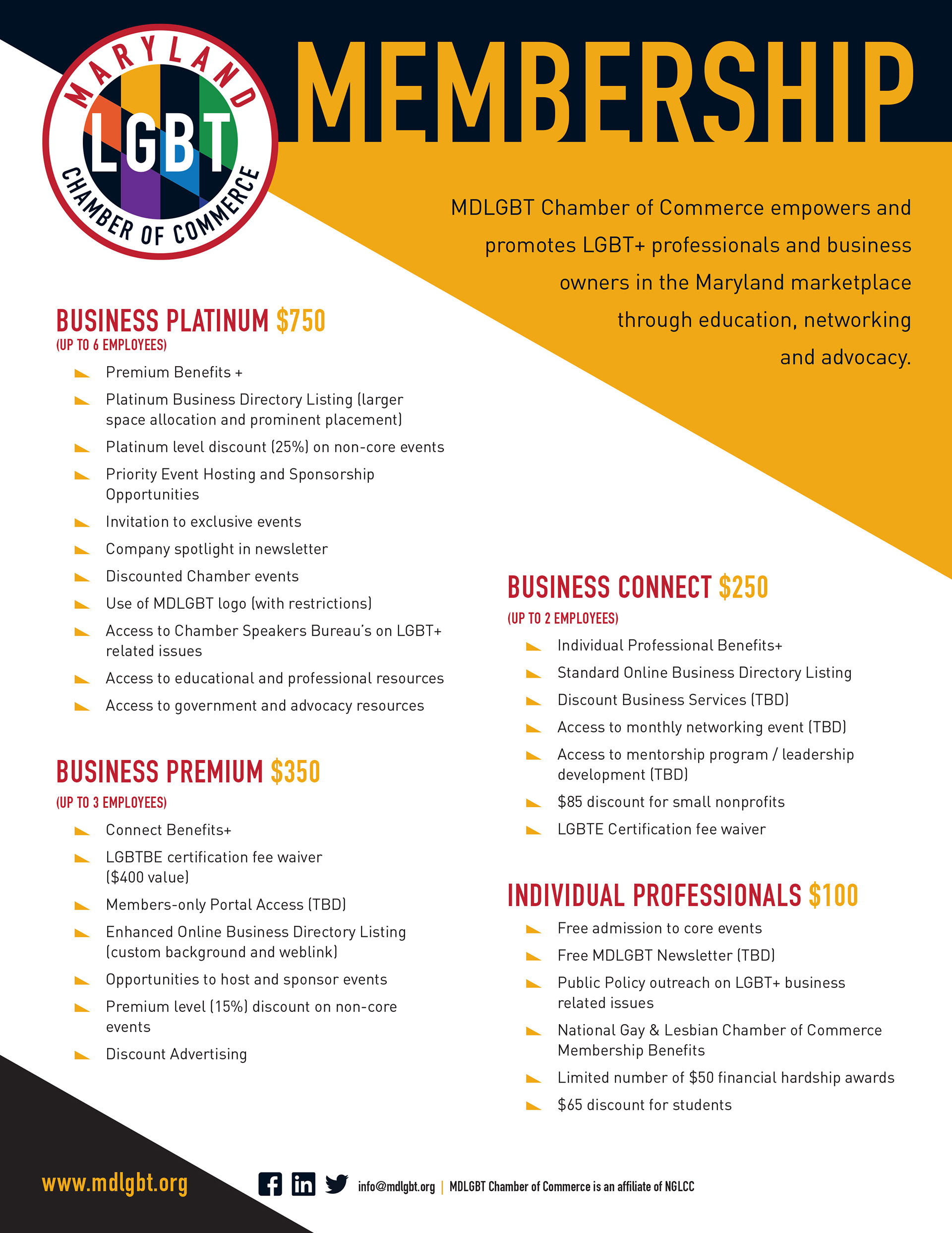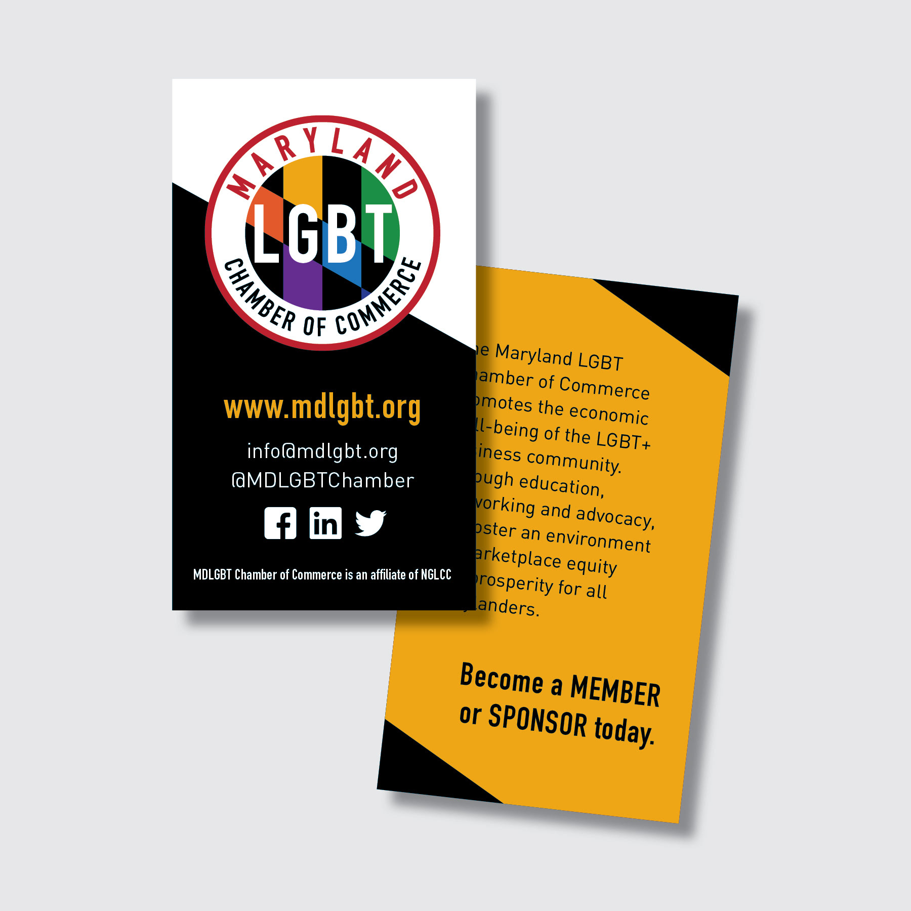 Identity and marketing materials for a new Chamber of Commerce serving the LGBT+ community of Maryland