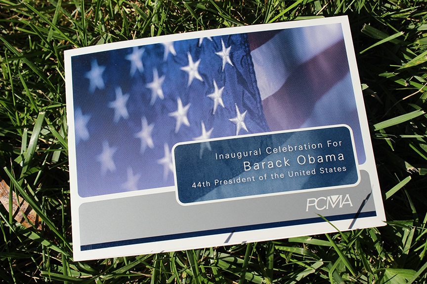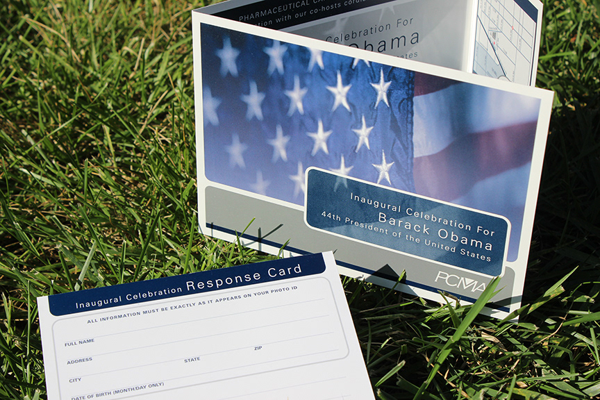 I designed this invitation and reply card for an inauguration day parade watch and party the PCMA.