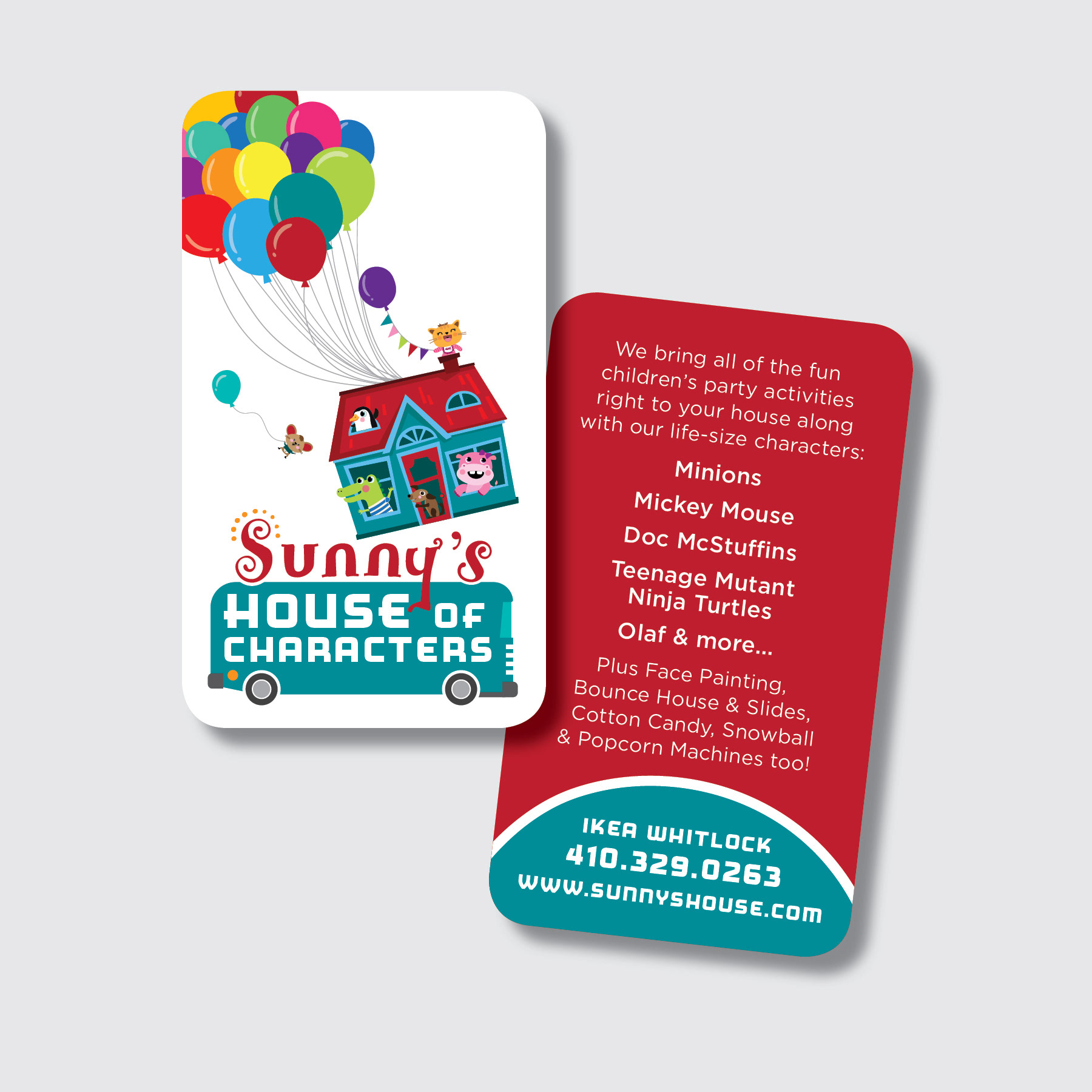 I created this fun logo for a kid's party bus! I used some stock cartoons and some custom art to create this light-hearted identity for Sunny's!